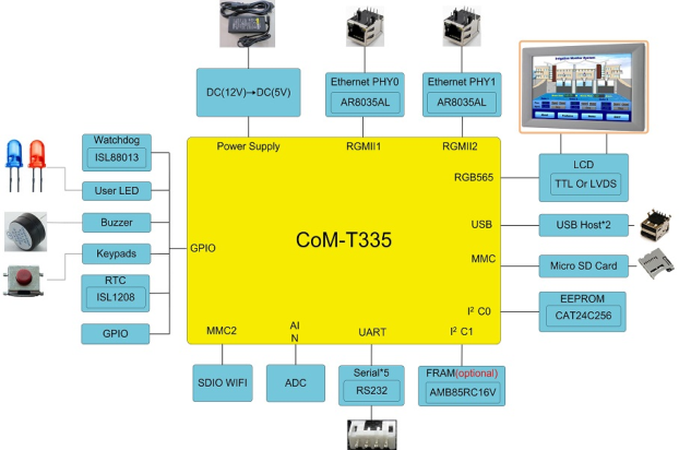 1.處理器采用系列化,從高端過渡到低端,滿足不同行業客戶的各種功能需求,達到性價比最優的微妙平衡。分別有AM3359/AM3358/AM3357/AM3356/AM3354等多款配置參數各不相同的處理器,且系列 處理器管腳PIN對PIN兼容,方便客戶進行產品升級