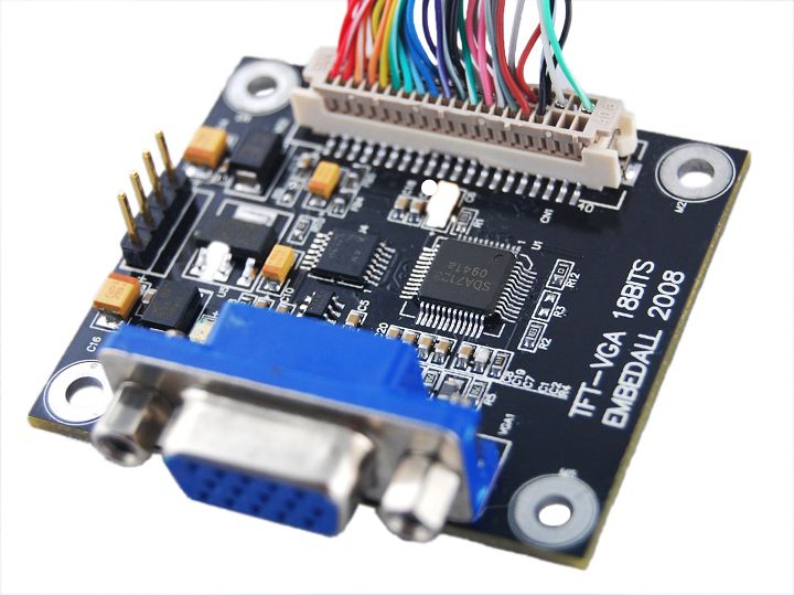 其中TFT 輸入為16或18位,而VGA輸出為標準的15-pinVGA輸出,支持的分辨率為: 1024 x 768, 800 x 600, 640 x 480!