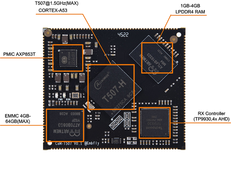 CoM-T507 隸屬于盈鵬飛嵌入式Computer-on-Module系列,該產(chǎn)品集成了四核Cortex-A53 1.5GHz(MAX)T507車規(guī)級處理器,穩(wěn)定運行Android 10.0/Ubuntu 20.04/Linux 4.9。CoM-T507提供了3.3V I/O接口,可提供寬溫的工業(yè)組件,運行于條件惡劣的工業(yè)現(xiàn)場!