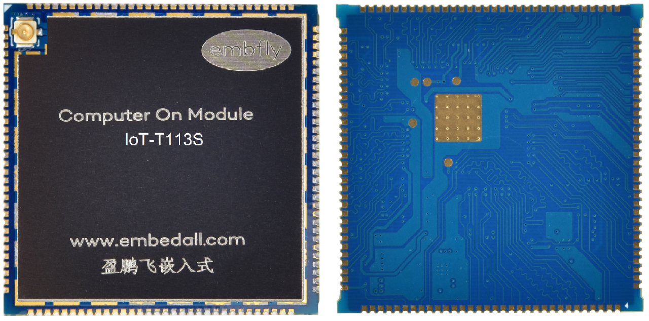 IoT-T113S屬于盈鵬飛嵌入式Computer-on-Module (CoM)系列,該產品集成了雙核 Cortex-A7 1.2GHz(MAX) T113-S3/S4處理器,穩定運行Linux 5.4/OpenWRT。 IoT-T113S提供了3.3V I/O接口,可提供寬溫的工業組件,運行于條件惡劣的工業現場!