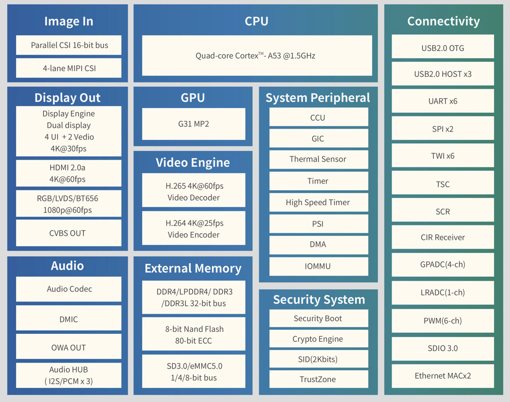 - CPU – Quad-core Arm Cortex-A53@1.5GHz